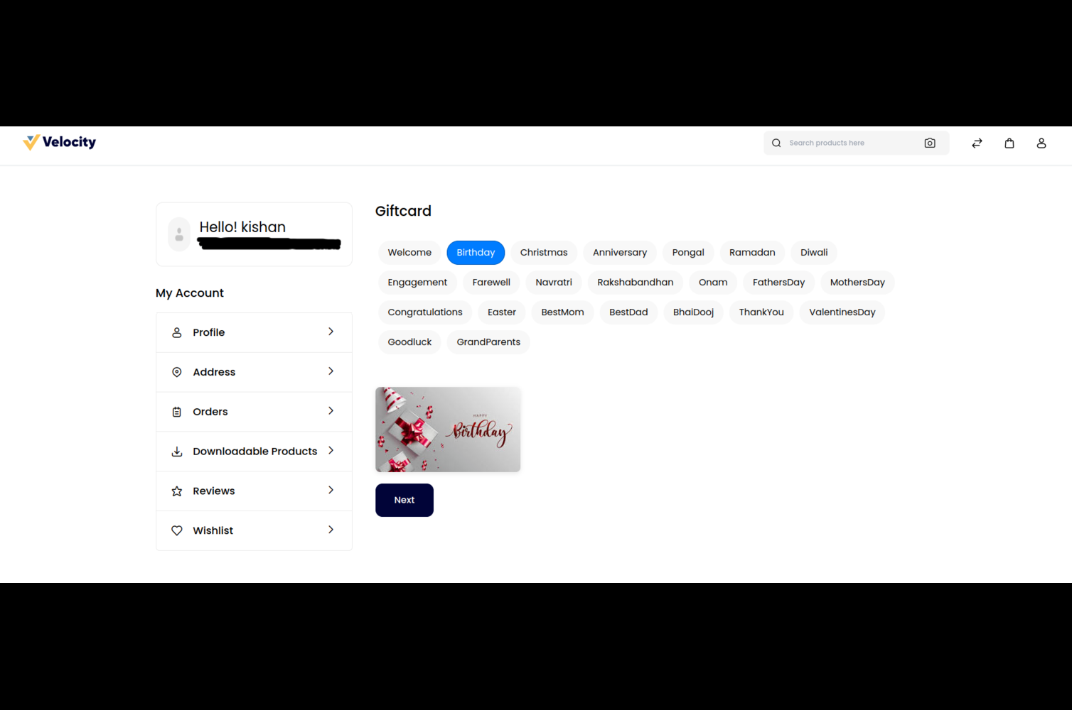 • Email Sharing: Send gift card details effortlessly via email, enabling seamless gifting for special occasions. During this process, the user selects the occasion, and both the occasion image and message are shared in the email, ensuring a superb user experience.