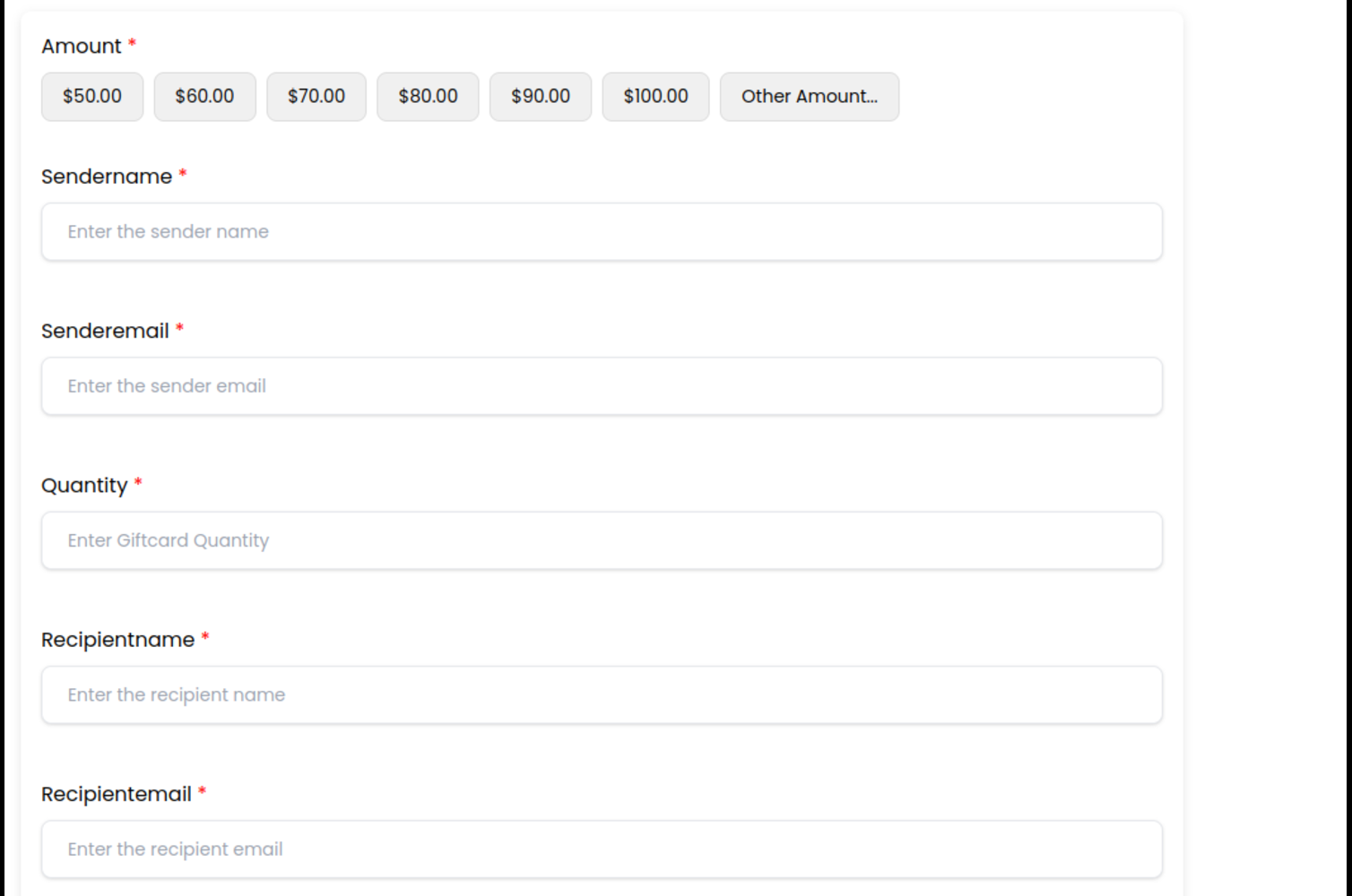 • Personalized Messages: Enable users to add personalized messages to gift cards, adding a thoughtful touch to each gift.