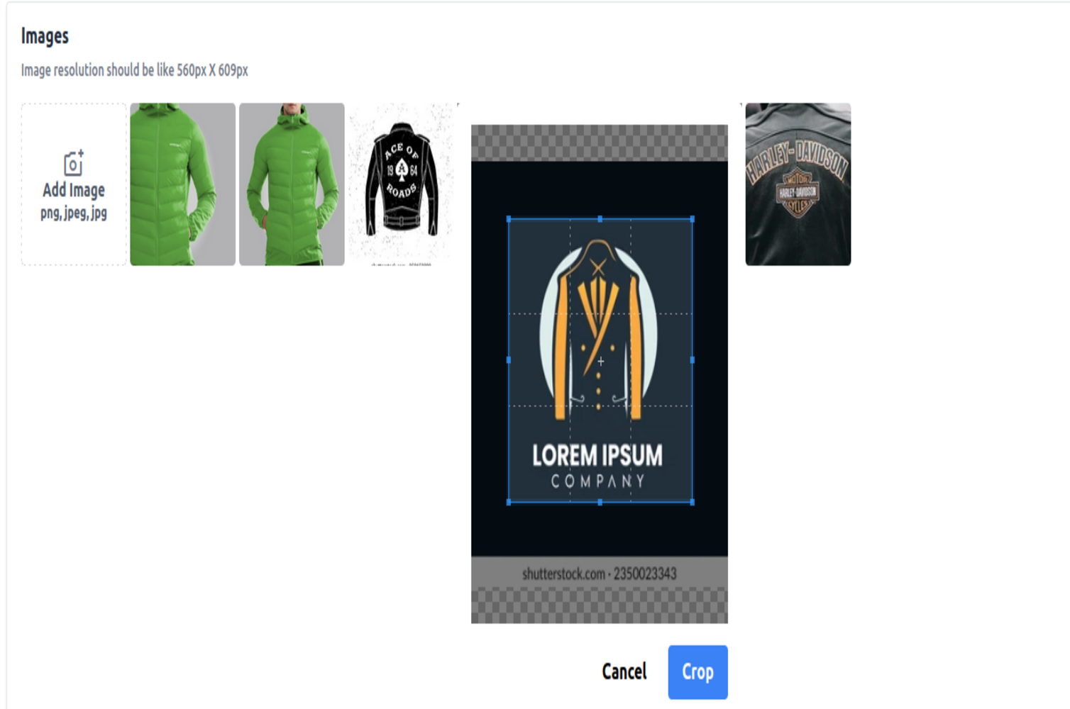 - After cropping, the admin can save the cropped image, which will then be used as the product image. This ensures that only the most relevant part of the image is displayed to customers.