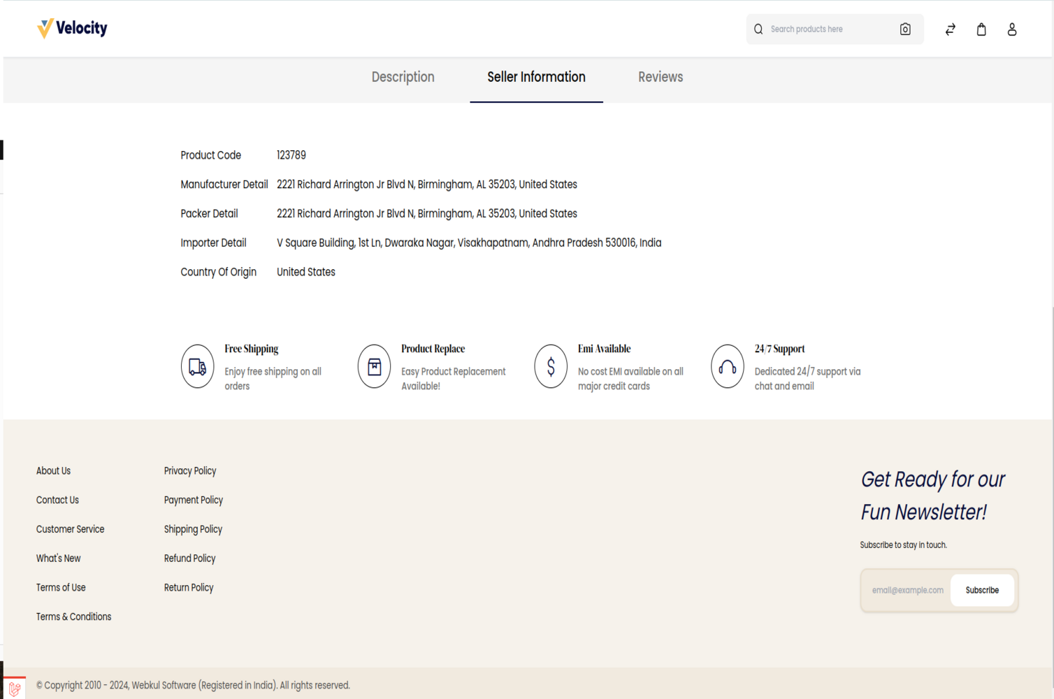 - Comprehensive Seller Information Display: Show detailed seller information on product pages, including packer details, manufacturer details, importer details, and country of origin.