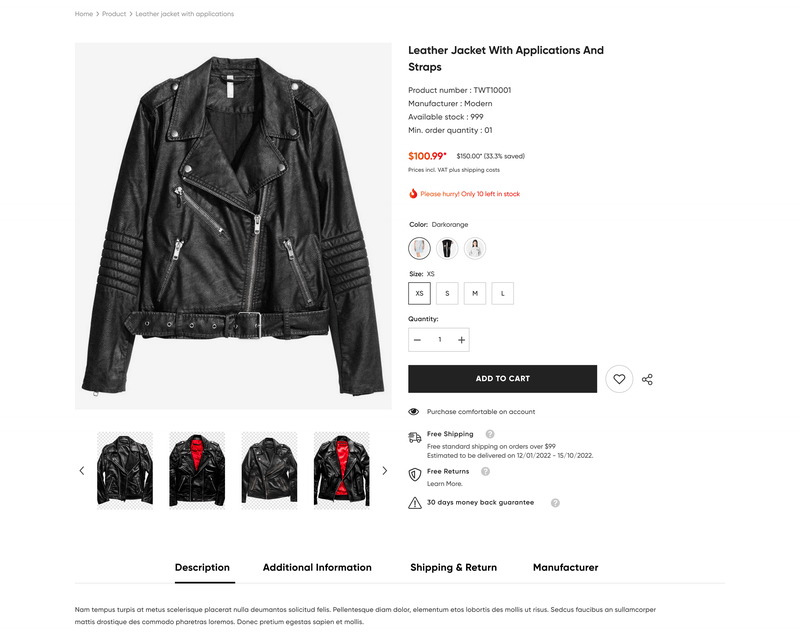 • Multiple Color Options: Customize your store's color scheme to match your branding.