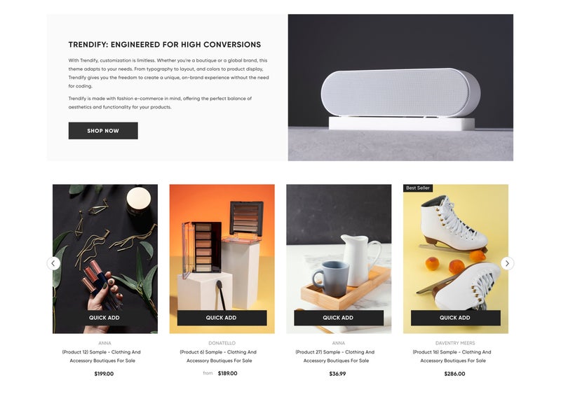 Trendify Shop Theme is a cutting-edge, responsive theme designed to elevate your e-commerce store with a modern, sleek look and intuitive shopping experience. Whether you're selling fashion, tech, or home goods, this theme is flexible enough to suit any niche. Its clean layout, powerful features, and customization options make it the perfect choice for store owners looking to create a lasting impression with their customers.